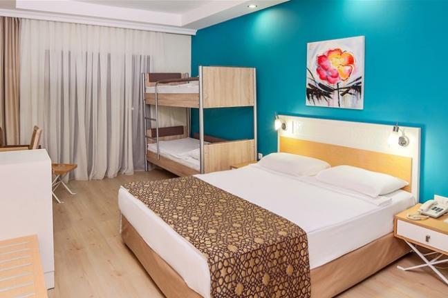 * Aile Odası: 34 m² genişliğindedir. 24 Adettir. Bahçe/ Orman manzaralıdır. Aile odaları; 2 yatak odalı, 1 banyolu, kartlı kilit sistemi, split klima, LCD TV (uydu TV ve müzik yayını), mini bar, çay kahve set up, kettle, dijital kasa, direkt telefon, yangın ihbar ve söndürme sistemi, kablosuz internet bağlantısı, duşa kabin, telefon ve saç kurutma makinesi bulunmaktadır. Odalar normal ya da Fransız balkonludur. 4 kişi konaklamaya uygundur.
